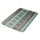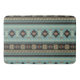 O padrão inspirado no cobertor nativo americano/tribal apresenta designs geométricos. Paleta: marrom, laranja, azul-céu e branco creme.