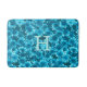 Matriz de banho floral gráfico moderno com um monograma personalizado em um padrão variado de dahlias - mídia digital mista em tons de azul, de azul-gelo pálido a índio profundo