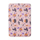 Esta design mostra um padrão de Dia das Bruxas brilhante e brilhante com um esquema de cores lúdico. O design apresenta um fundo cor-de-rosa suave, adornado com um conjunto de ícones clássicos do Halloween. Entre eles estão chapéus de bruxa, caldeiros borbulhando com poções, morcegos voadores, crânios, varapau e garrafas de poção. Há também elementos como cogumelos, estrelas, luas em crescente, e nuvens, todos rendidos em uma paleta de roxas ricas, laranjas, e negros. O efeito geral é um padrão divertido e festivo que captura o espírito assustador, mas iluminado, do Dia das Bruxas, perfeito para decorações, figurinos ou suprimentos de festas.