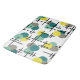 Uma era atômica retrorreflectora inspirou um padrão com teal, turquesa, cinzas e círculos de moléculas amarelas, juntamente com o meio século moderno chamado negrito.