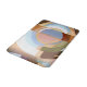 Um tapete de banho no estilo Art Deco com uma moderna reviravolta abstrato com um padrão gráfico de círculo pintado por na moda em ricos castanhos quentes e blues macios e pulverulentos. Escolha entre 3 tamanhos.