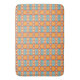 A imagem apresenta um padrão geométrico repetido composto por formas e cores interligadas. As matizes dominantes incluem laranja, azul e vermelho, formando um design simétrico. O padrão consiste em formas hexagonais, círculos e elementos retangulares, criando um mosaico visualmente envolvente e vibrante.