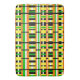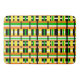 Este tapete de banho apresenta uma reviravolta moderna na xadrez em laranja, amarelo, verde, preto e branco.