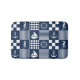 Marinho Padrão de patchwork azul, tapete de banho com cheques e faixas geométricas, bem como cavalos marinhos, embarcações à vela, âncoras e rodas de navios.