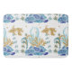 Aperte o seu banheiro com este lindo tapete de banho de padrão oceânico náutico com algas marinhas e peixes com brilho azul e ouro. Presente ideal para o aniversário, casamento ou ocasião de inauguração.