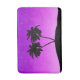 Bath mat em uma silhueta de palmeiras em uma ilha tropical, sobre um fundo violeta a profundo gradiente roxo com estrelas