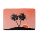 Bath mat em uma silhueta preta de palmeiras em uma ilha tropical, sobre um fundo laranja sunset