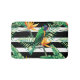 Papagaio colorido bonito e padrão exótico floral. Modelo de tapete de banho personalizável