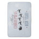 Um tapete festivo de Natal. Uma cinza sutil com flocos de neve. Rico com letra de tendência que diz: Feliz Natal e Feliz ano novo. Com um Papai noel preto de silhueta no seu trenó sendo puxado por sua rena voando pelo céu.