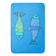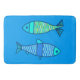 Médio-século Moderno, caprichoso, tapete retrô de padrão de peixes, em turquesa, aqua, verde limão e azul-céu, sobre fundo azul-ceruliano