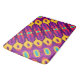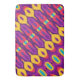 Cores escuras, como o teal, o roxo, o amarelo e o rosa se repetem na design, criando um olhar brilhante e vivo com um ritmo que sente cheio de movimento.