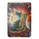 Esse design vibrante replica o olhar de vidro manchado e apresenta uma belíssima raposa vermelha entre árvores sob um sol amarelo.