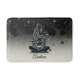 Uma silhueta encantadora de uma mulher berrando uma bola de cristal brilhante, simbolizando maravilha e introspecção. O pano de fundo apresenta um luxuoso boque preto-e-ouro com luzes suaves e cintilantes celestes, evocando uma atmosfera sonhadora.