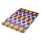 Este design é cheio de cores brilhantes e formas em negrito. Os padrões de lágrimas e diamante se repetem em camadas divertidas de amarelo, roxo, azul e lacrimejo. Ele tem uma sensação divertida de festival com um toque de estilo retrô.
