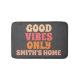 A retro-style design of a vintage font saying "Good Vibes Only" in soft pastel colors, and a place to personalize your surname at the bottom of the bath mat.