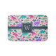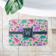 Personalize este tapete de banho temido para dinossauros fofinhos com o monograma inicial de solteiro do seu filho em letras brancas para um toque personalizado legal! Criado especialmente para as meninas que amam dino, este design colorido apresenta ilustrações cor-de-rosa, roxo e dinossauro verde-menta sobre um fundo cor-de-rosa pincelado.