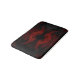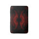 Design abstrato de morcego preto e vermelho.