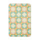 Seamless retro pattern with rounded squares in peach, teal, and cream hues, outlined in orange. Mid-century modern style, conveying a vintage, playful tone.