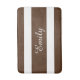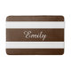 tapete de banho elegante com um padrão listrado castanho e branco e um nome personalizado impressão. Desperdício de banho correspondente disponível.