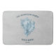 Adicione um toque elegante à decoração da banheira com este tapete azul de concha. Bath mat design apresenta uma camada vibrante e um texto personalizado para personalizar com seu nome de família contra um fundo texturizado de papel de cinza leve. Itens adicionais de decoração pessoal disponíveis com este design.