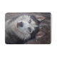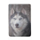 Esta pintura digital representa um Husky Siberiano sobre a neve, seu pelo brilhando com realces gelados enquanto a paisagem de inverno se estende infinitamente atrás dela. Os olhos expressivos do cão chamam a atenção do espectador.