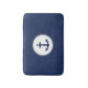 Na moda marinho silhueta azul âncora dentro círculo branco. A cor de fundo é azul escuro.