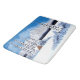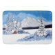 Um tapete de banho com uma bela cena de inverno, incluindo montanhas de neve, cabana rústica e neve coberta por vergreens. Arte original por W.B.