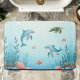Apresentando nosso tapete de banho do Mar. Esta design apresenta uma ilustração fofinha de golfinhos, peixes, tartarugas marinhas e recifes.