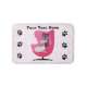 This bath mat has two sophisticated cats wearing diamond collars, one black and one white, sitting in a mid century style pink chair on a white background with pink dots. Customise your text with the template.
