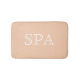 Bath mat mostrado em uma cor sólida de rosa esbranquiçado com texto branco SPA. Personalize este item e talvez adicione seu nome a ele ou ao comprar como está.