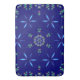Este trabalho de arte apresenta um padrão de abstrato vibrante e simétrico contra um fundo azul índio profundo. O design combina elementos florais e geométricos, com formas pétais luminosas dispostas em formações radiais, parecidas com flores estilizadas ou estereótipos. Essas pétalas brilham em tons de azul elétrico com sutis contornos verdes, criando um sentido dinâmico de profundidade e energia. Espalhados entre os motivos maiores estão pequenos aglomerados de órbitas iridescentes, semelhantes a bolhas em matizes arco-íris - vermelho, teal, rosa e verde - acrescentando um toque lúdico e futurista. No centro da composição está uma formação caleidoscópica em forma de mandala composta dessas mesmas esferas brilhantes, ancorando o design e aprimorando sua simetria hipnótica.