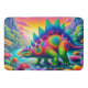 Este tapete de banho tem um estegossauro colorido.