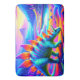 Este tapete de banho tem um dinossauro colorido de estegossauro.