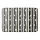 Sussurros entre as faixas: Um tapete alegre de respiração úmida Uma procissão rítmica de faixas verticais pretas e brancas de ossos define o palco para uma assombração silenciosa. Espalhados entre as linhas, pequenos fantasmas brancos com olhos vazios e bordas moles e ondulantes flutuam como memórias esquecidas. A sua colocação uniforme evoca um sentido de ordem, mas a sua presença sugere algo calmamente perturbado — um eco de espíritos suspensos no tempo.