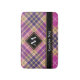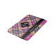 Design de cor rosa, ouro amarelo e azul-tartan. Um padrão perfeito. Texto personalizado e monograma.