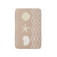 Linda esteira de banheiro com tema de praia em um design gráfico tropical que inclui uma concha de vieira, concha de náutilo e estrela-do-mar, todos projetados para decorar seu banheiro em decoração da Flórida ou costeira.
