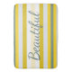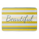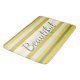 Um tapete de banho em um impressão branco amarelo e verde, bastante moderno. O texto pode ser comutado para qualquer mensagem de inspiração ou o texto pode ser removido. As listras brancas podem ser personalizadas para qualquer cor de sua escolha.