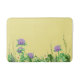 Um belo tapete para o banho tem uma borda de jardim com palha em fundo amarelo