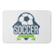 um tapete de banho que contém um design especial para amantes do esporte e do futebol.