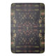 Exótica e escura, com cores naturais e um ligeiro sabor do Oriente, o belo padrão nesse Bath Mat de ZoeSPEAK foi feito a partir de uma fotografia original da latência de ferro em formas brutas e do tecido tropical. Frentes de palma e outras folhas tropicais, em tons de verde claro, terracota e bege, descansam graciosamente sobre fundo negro atrás da estrutura.