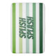 Listras em diferentes formas de verde. Decoração fresca e moderna do banheiro com seu texto personalizado. Você também pode excluir o texto se desejar.