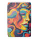 Rochas vivas e remendos num arco-íris de cores criam o perfil abstrato de um homem ou mulher com expressão pacífica. Sombras de azul, laranja, amarelo e vermelho se misturam harmoniosamente para traçar traços faciais e cabelos fluidos.