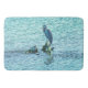 Uma fotografia minimalista de um Heron empoleirado numa árvore que não se submergiu completamente debaixo da água. A superfície da água é perturbada pelo vento e as ondulações criam um pano de fundo azul texturizado. Imagem Copyright ©2018 Kimberly J Tilley.