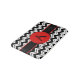 Faça uma declaração de moda com sua decoração doméstica com este tapete monograma com sua inicial. Use em banho, cozinha, quarto ou qualquer quarto na casa. O design gráfico Chevron ziz zag (zizzag) é uma das tendências mais quentes de arte e design, e é extremamente popular da moda ao decoro doméstico. Este sofisticado tapete chevron preto-e-branco recebe um traço de cor oculto com um círculo vermelho para personalizar com o seu monograma inicial e se senta sobre uma faixa preta com bordas vermelhas. Fácil de personalizar!