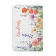 This vibrant watercolor wildflowers personalized bath mat showcases a pattern with lively mix of purple, orange, and red jewel-toned blooms, paired with sleek modern script typography.