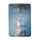 Vista de manhã cedo de uma janela coberta pela geada.
