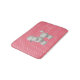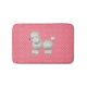 Bonito tapete de banho, feito em um padrão de bolinhas cor-de-rosa e branco, com gráficos de um poodle branco suave, no meio. Personalize-o para adicionar qualquer texto que você quiser. Vem em três tamanhos.