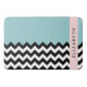 Padrão elegante, na moda e sofisticado zigzag (chevron) em preto e branco sobre fundo azul. Presente moderno e moderno, perfeito para o amante ziguezague na sua vida. Personalize adicionando o seu nome, apelido, monograma ou iniciais.