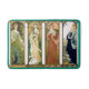 A colagem maravilhosa de belas artes do vintage de Nouveau da arte das senhoras com um pavão, as pombas, uma cisne e os pássaros das andorinhas que voam, está nesta esteira de banho. As imagens são dominio público devido aos direitos reservados expirados.