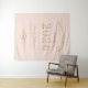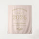 Elegante e moderno letreiro de fundo de fotografia para festa de graduação "Parabéns, Turma de 2023" personalizado apresenta um design de tipografia e esquema de cores rosa beije e dourado antigo. Personalize com o nome do graduado e da escola. As cores podem ser personalizadas para combinar com outras cores da festa ou da escola.